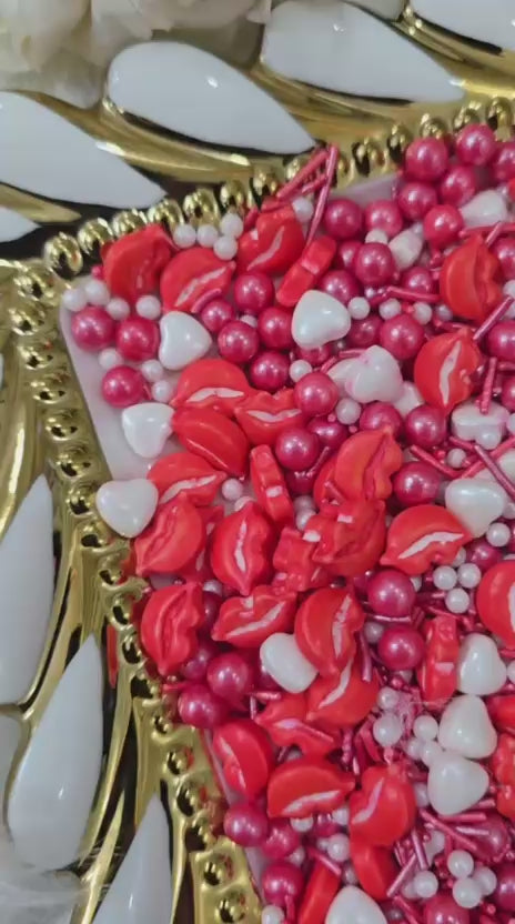 Cupid’s Kiss Sprinkle Medley – Red Lips, Hearts & Pearl Edible Cake Decorating Mix
