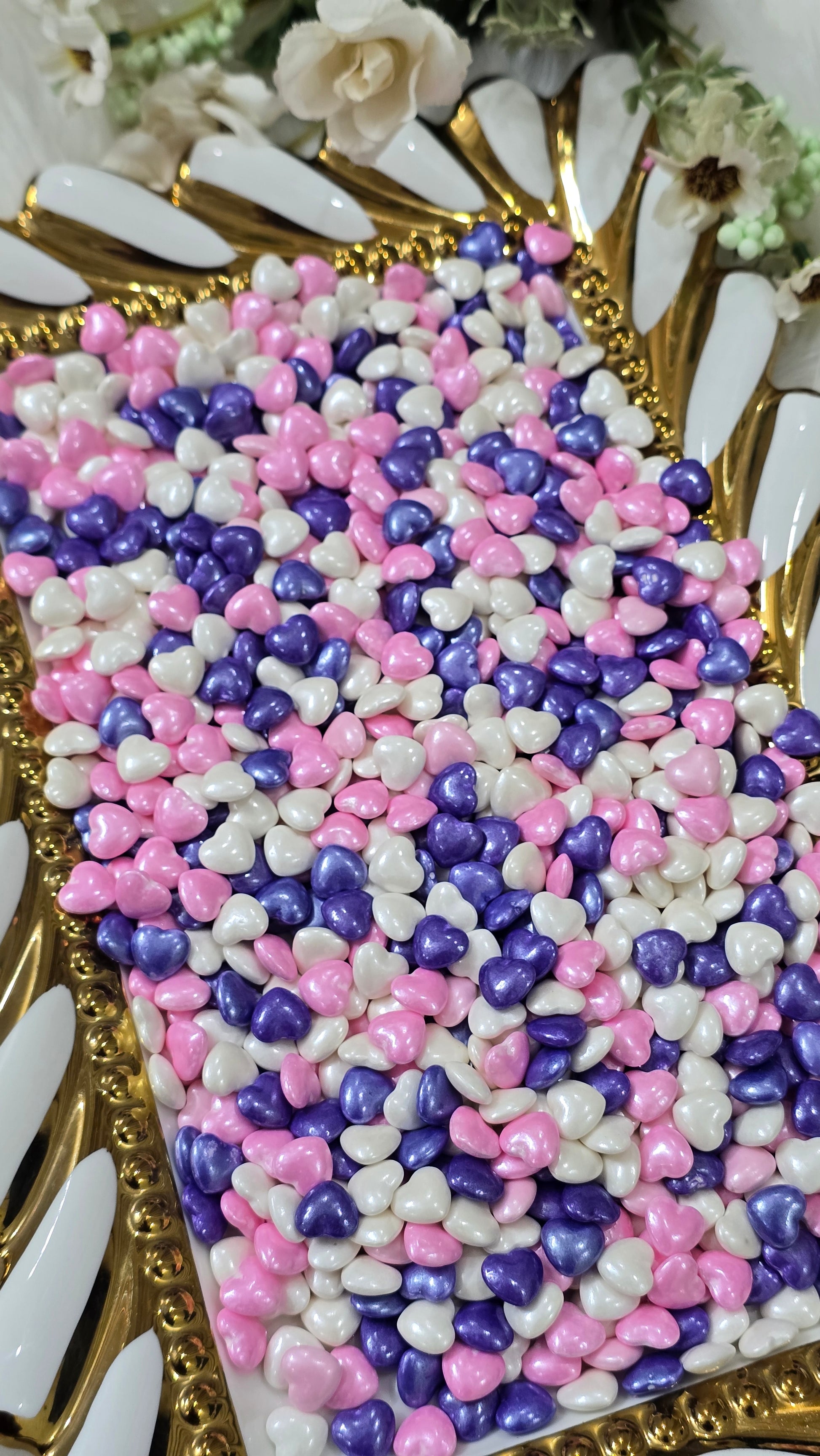 Shimmering Heart Pearl Sprinkles Mix – Lavender, Pink & White Edible Decors
